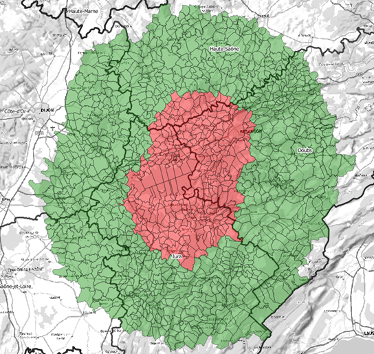 - Foyer mis sous APDI et définition d’une ZR (= ZP de 20km + ZS de 50km)